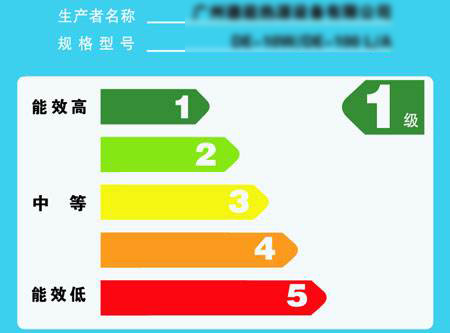 國家在2015年正式推出《熱泵熱水器機(器)能源效率標識實施規(guī)則》(以下簡稱規(guī)則)。《規(guī)則》將空氣能熱水器的能效等級劃分為五個等級,分別為1~5級。從5至1,能效等級越來越高,代表著熱水器消耗同樣的電能,可以產(chǎn)生的熱量越多、越省電。