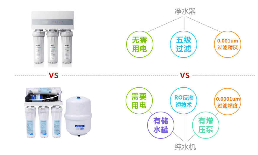 凈水機(jī)或者凈水器,是一個統(tǒng)稱,如果細(xì)化凈水機(jī)可以分為單級的超濾凈水器,比如霍尼韋爾、凱優(yōu)等就是有著不銹鋼外殼里面包含一根超濾膜的也可以叫凈水器或者凈水機(jī)。還有一種分級過濾的一般分為四級或者五級甚至更多級,多采用的是PP棉,活性炭,顆粒炭,粉末炭,超濾芯,后置碳等組合在一起的也叫凈水機(jī)或者凈水器。這些所謂的凈水機(jī)或者凈水器都不需要用電源,過濾精度大多在千分之一微米或者更高一點。