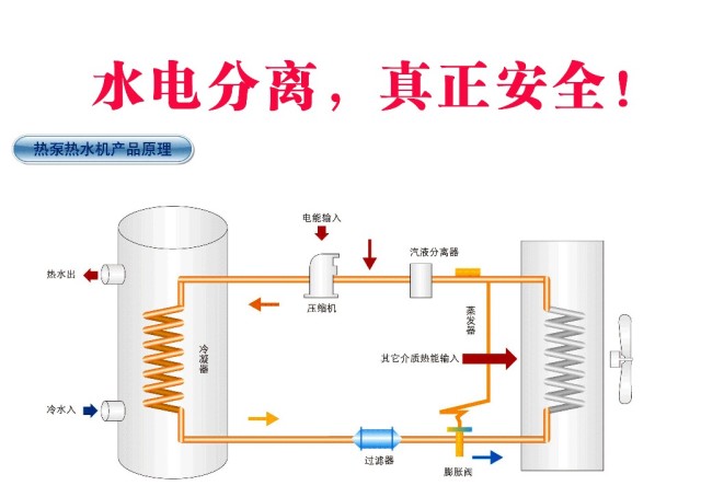 那么,區(qū)別于燃?xì)庀丛。諝饽軣崴髡嬲龅搅怂姺蛛x,安全性能更好,帶給消費者更加舒適的使用體驗??諝饽軣崴鞯陌l(fā)展至今已經(jīng)經(jīng)歷了數(shù)十年的歷史,只不過真正以獨立的熱水器形式進入到大家的生活中則是近十多年的事情。早期的空調(diào)配置,在制冷系統(tǒng)中安裝上電磁四通閥門(又稱作換向閥),通過四通閥門切換方向,改變制冷劑的流動方向,空調(diào)就可以制熱??諝饽軣崴饕彩且源卧?,壓縮機排除的高溫高壓蒸汽狀的制冷劑流向保溫水箱里的冷凝器,將熱量傳送給水箱中的自來水并且進行加熱。熱泵熱水器通過吸收室外空氣中的熱量,電帶動壓縮機進行換熱工作,比單獨的使用電加熱熱水器更加節(jié)能省電,節(jié)能可達到75%以上。